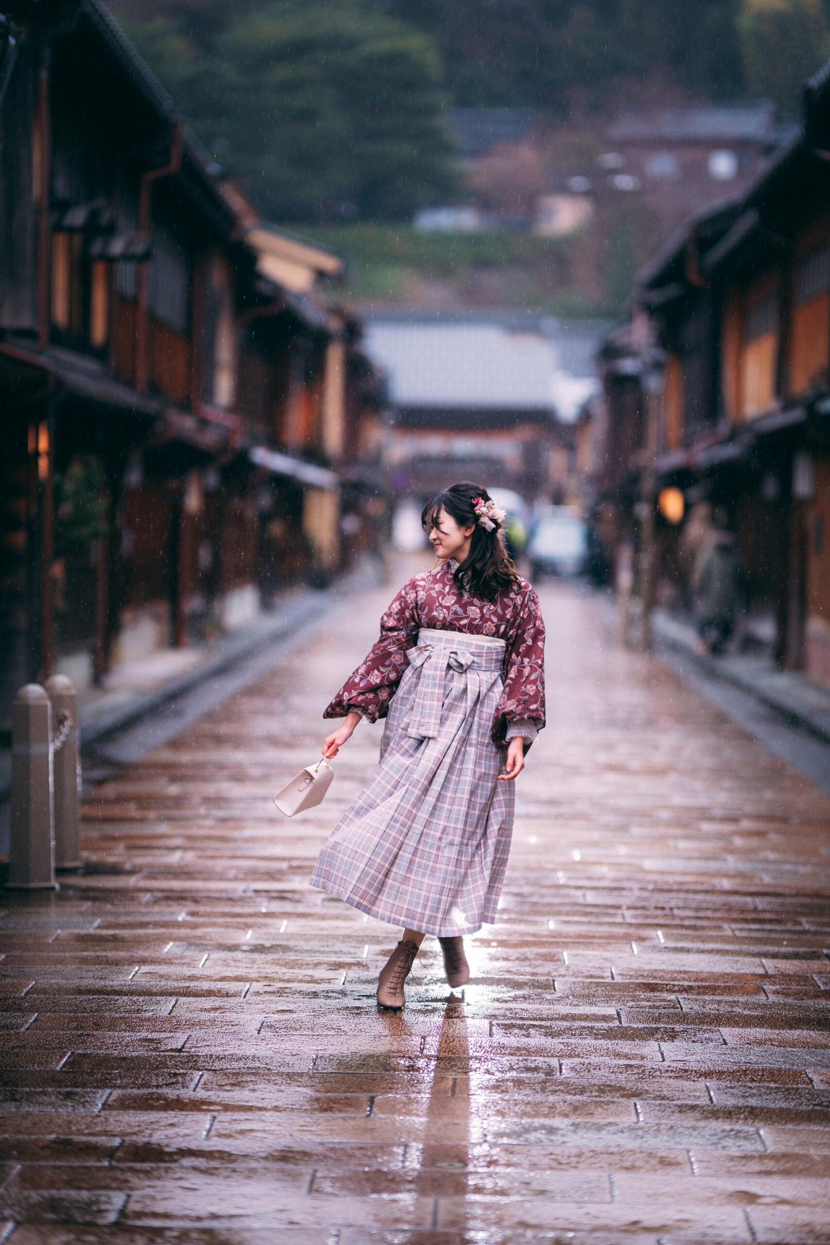 登場する姿を見て、数人の大学生が卒業式に袴を