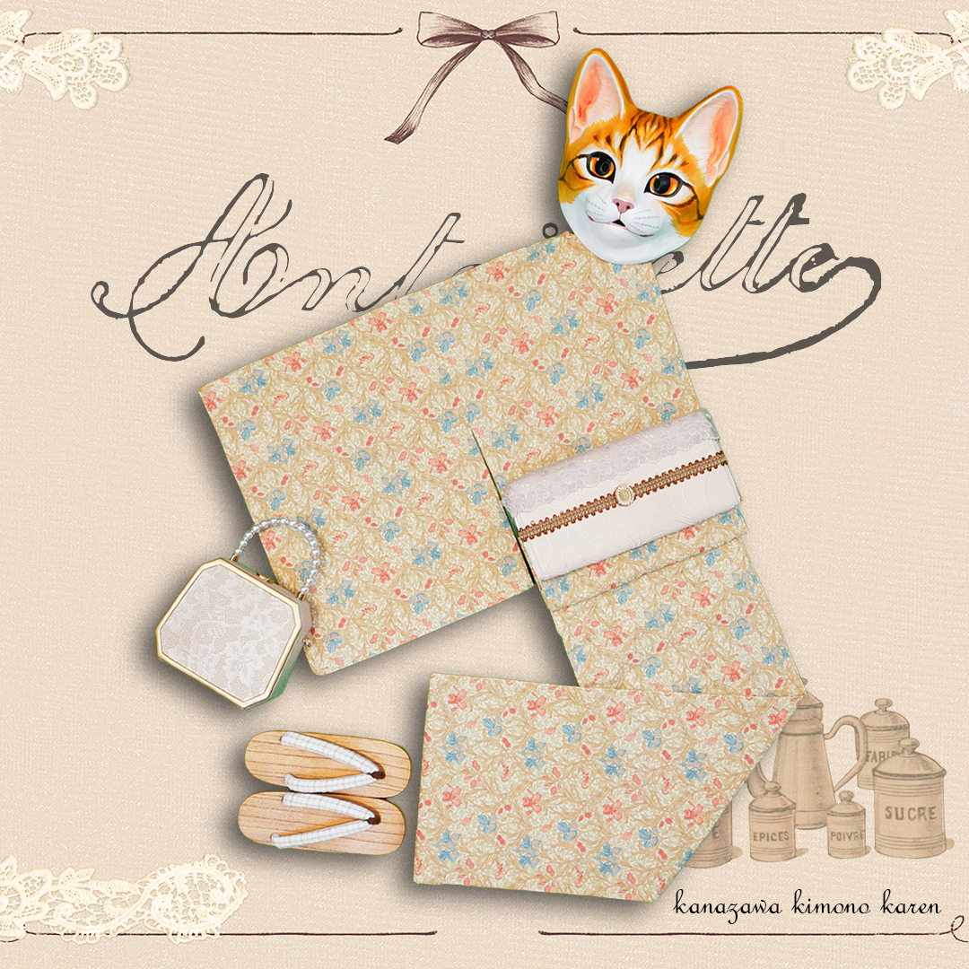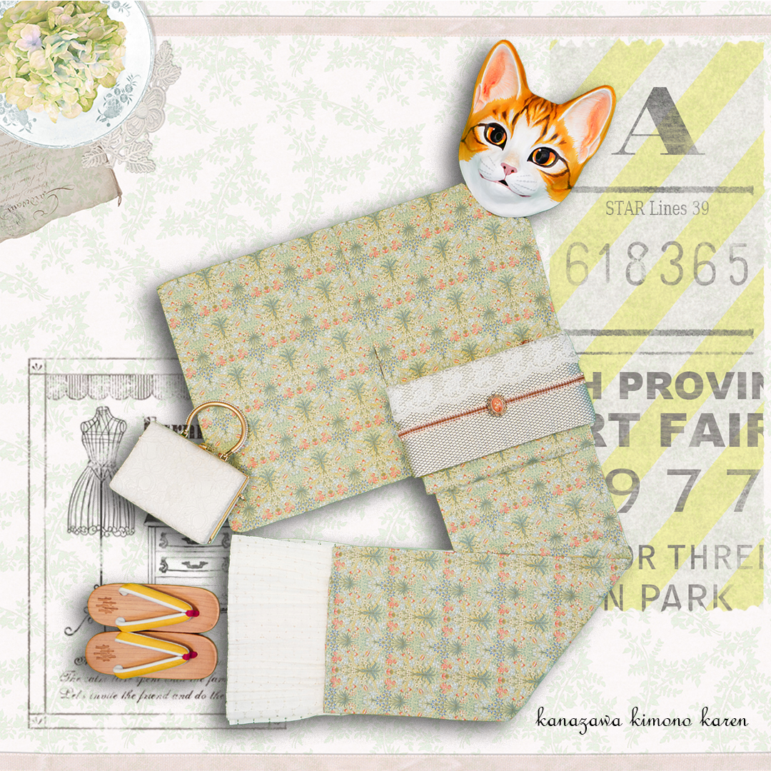 金沢きもの花恋オリジナルのウイリアム・モリスデザイン着物。